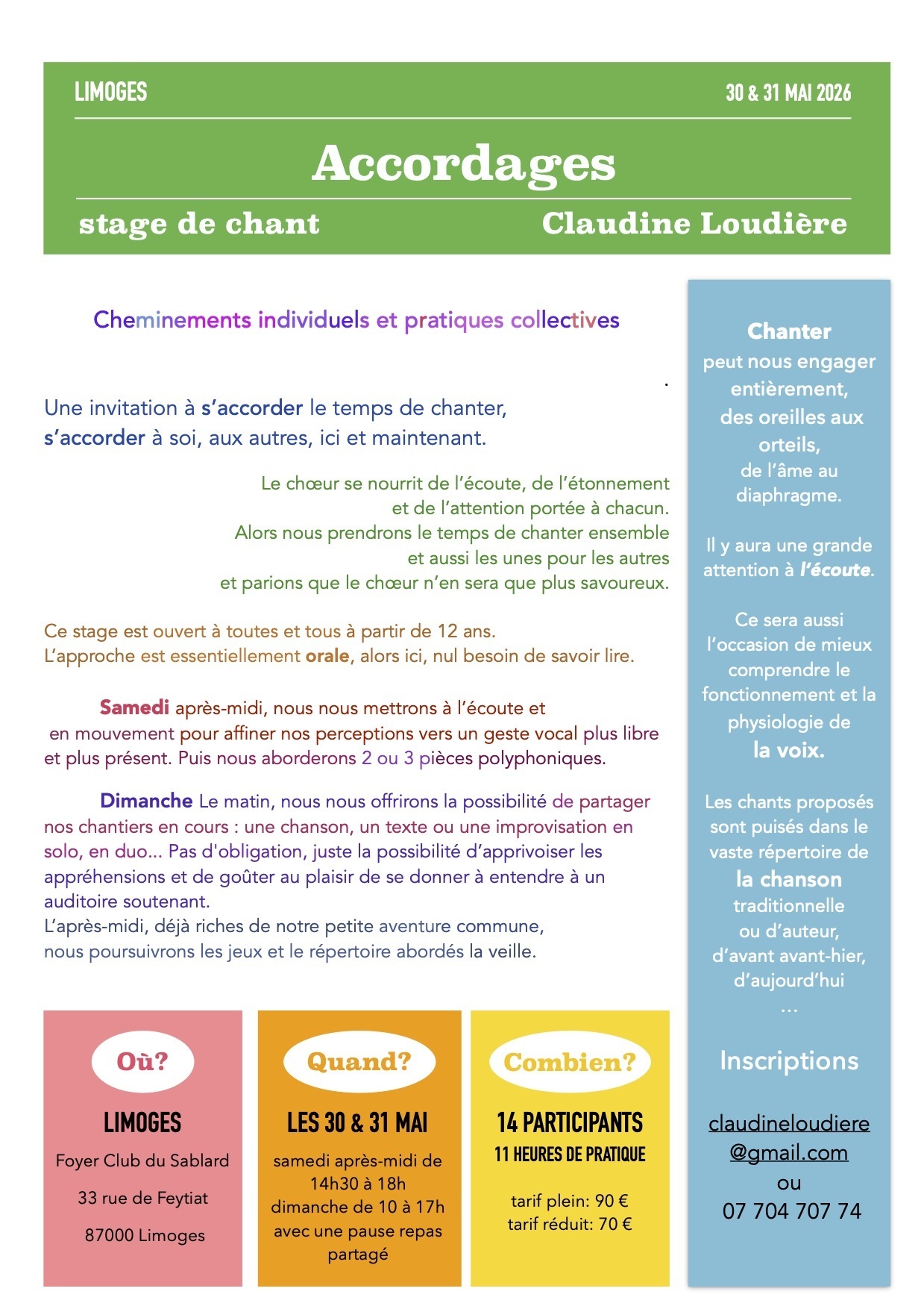 Voir programme sur l'affichette. Informations complémentaires : 07 70 47 07 74