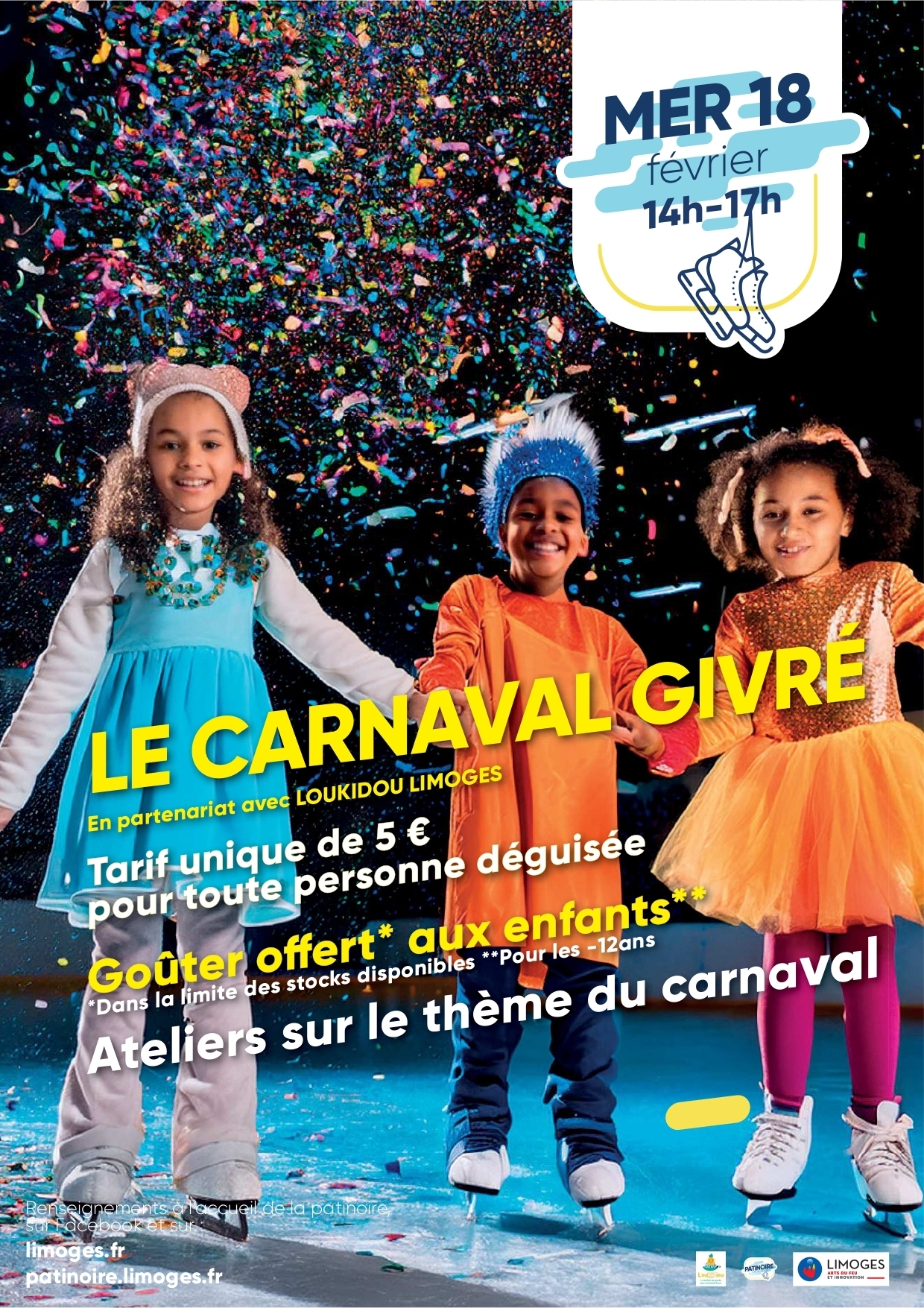 Comme chaque année, la patinoire organise son traditionnel "Carnaval Givré", le mercredi 18 février 2026 de 14h à 17h.