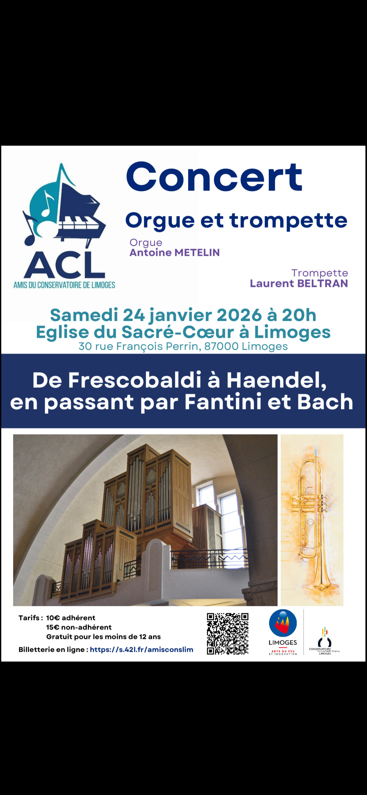 Nous vous convions au prochain concert organisé par l'Association des Amis du Conservatoire de Limges en collaboration avec l'église du Sacré-Coeur.