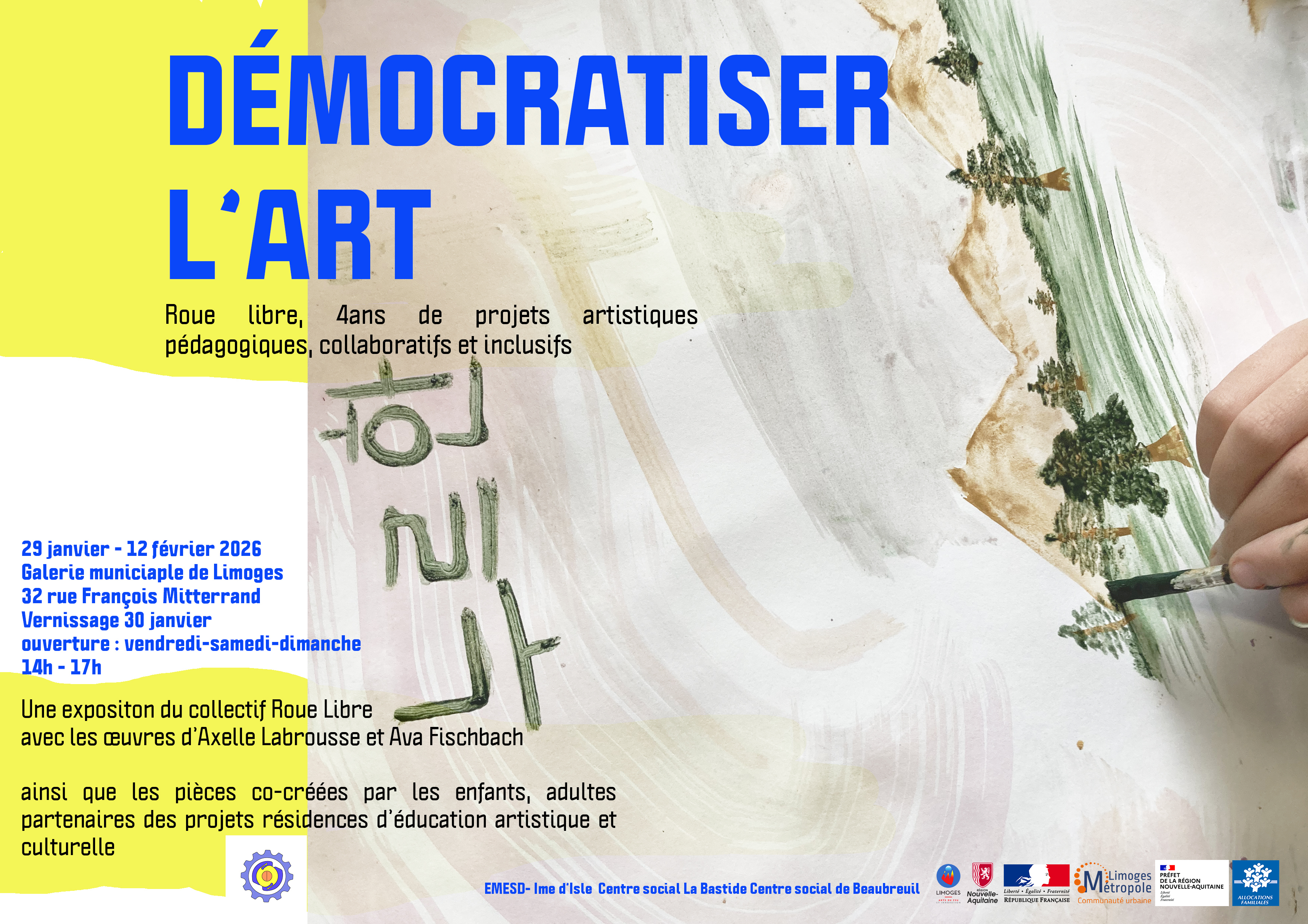 L’exposition se tiendra du 29 janvier au 8 février 2026 et présentera 4 ans de projets artistiques, pédagogiques, collaboratifs et inclusifs portés par le collectif Roue Libre sur le territoire de la Haute-Vienne.