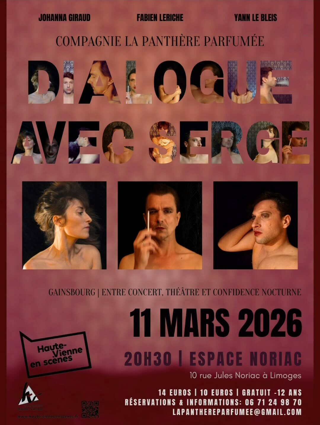 Dialogue avec Serge est un spectacle hommage a Serge Gainsbourg, une confidence chuchotée entre un récitant, une chanteuse et un instrumentiste... De Melody Nelson à la Javanaise, de Baudelaire à Chopin, ce récital explore les ombres et les fulgurances d'un des plus grands compositeurs de variété française du 20ème siècle.