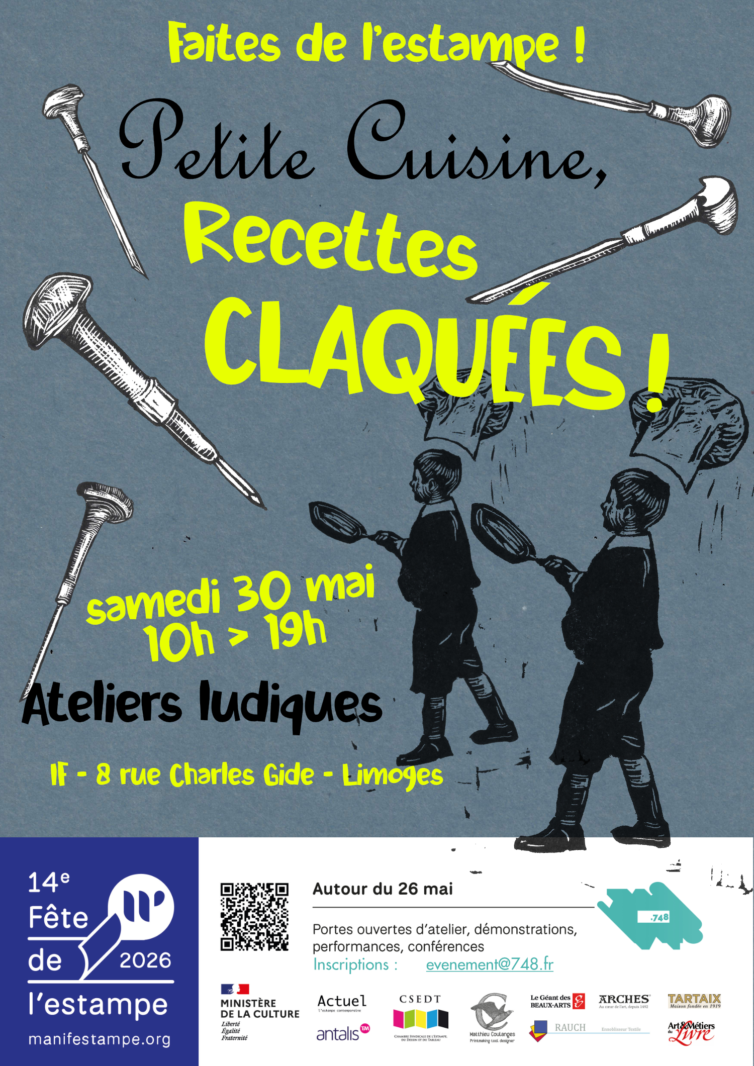 Pour la fête de l’estampe, faites de l’estampe avec nous ! .748 et ses invités se sont lancés un défi “Petite cuisine, recettes claquées” pour vous mitonner une exposition-fusion et des ateliers facétieux.