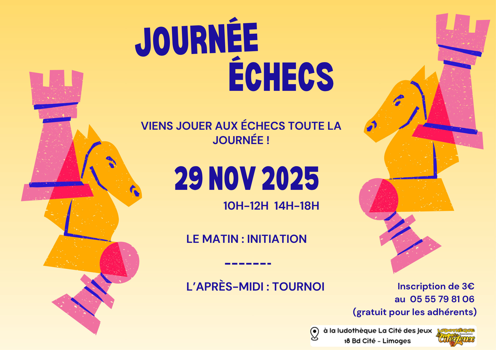 Inscription par téléphone (05 55 79 81 06) ou en passant directement à la ludothèque.