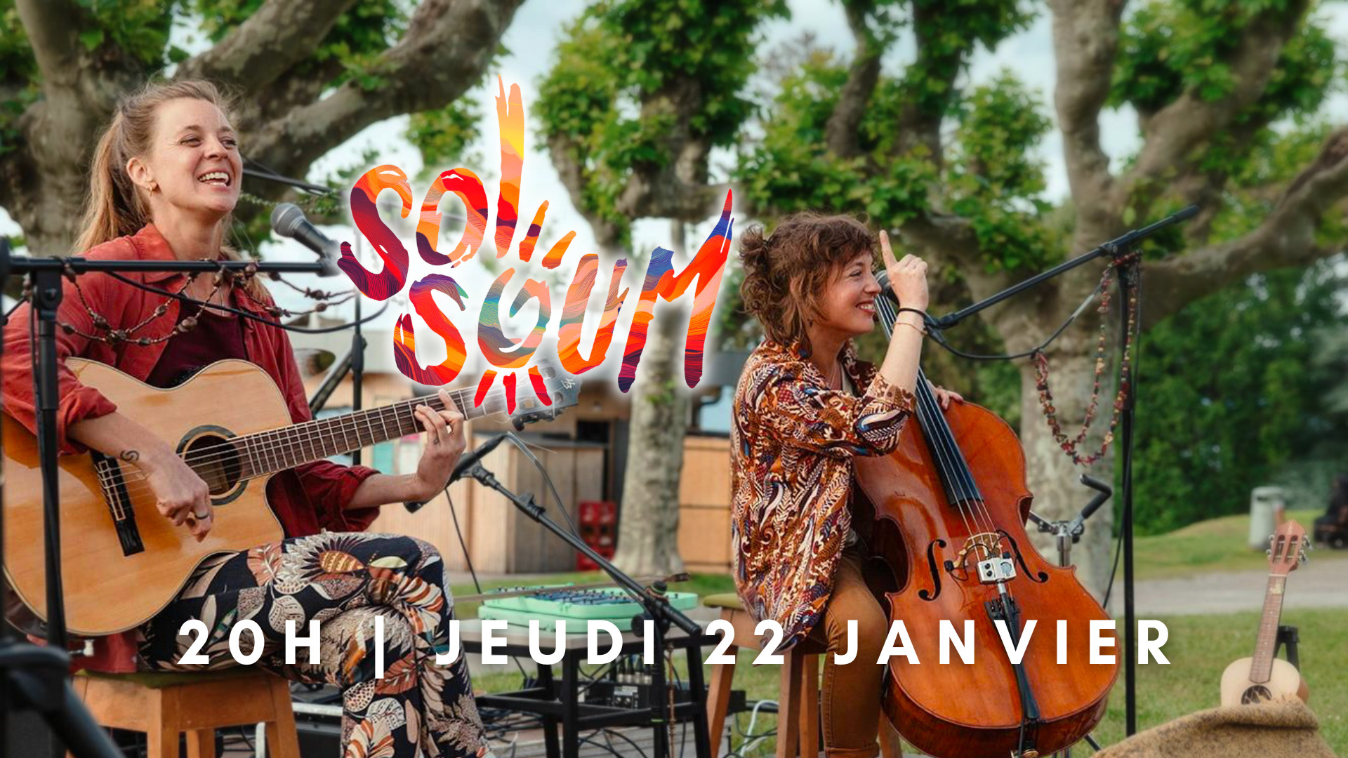 Entremêlée à leurs compositions intimes en français et en espagnol, les 2 musiciennes nous livrent leur interprétation sensible de chants d’ici et d’ailleurs. Solsoum communique ainsi avec douceur en langage universel, versant amour et générosité dans une proposition qui réchauffe, amuse et émeut.