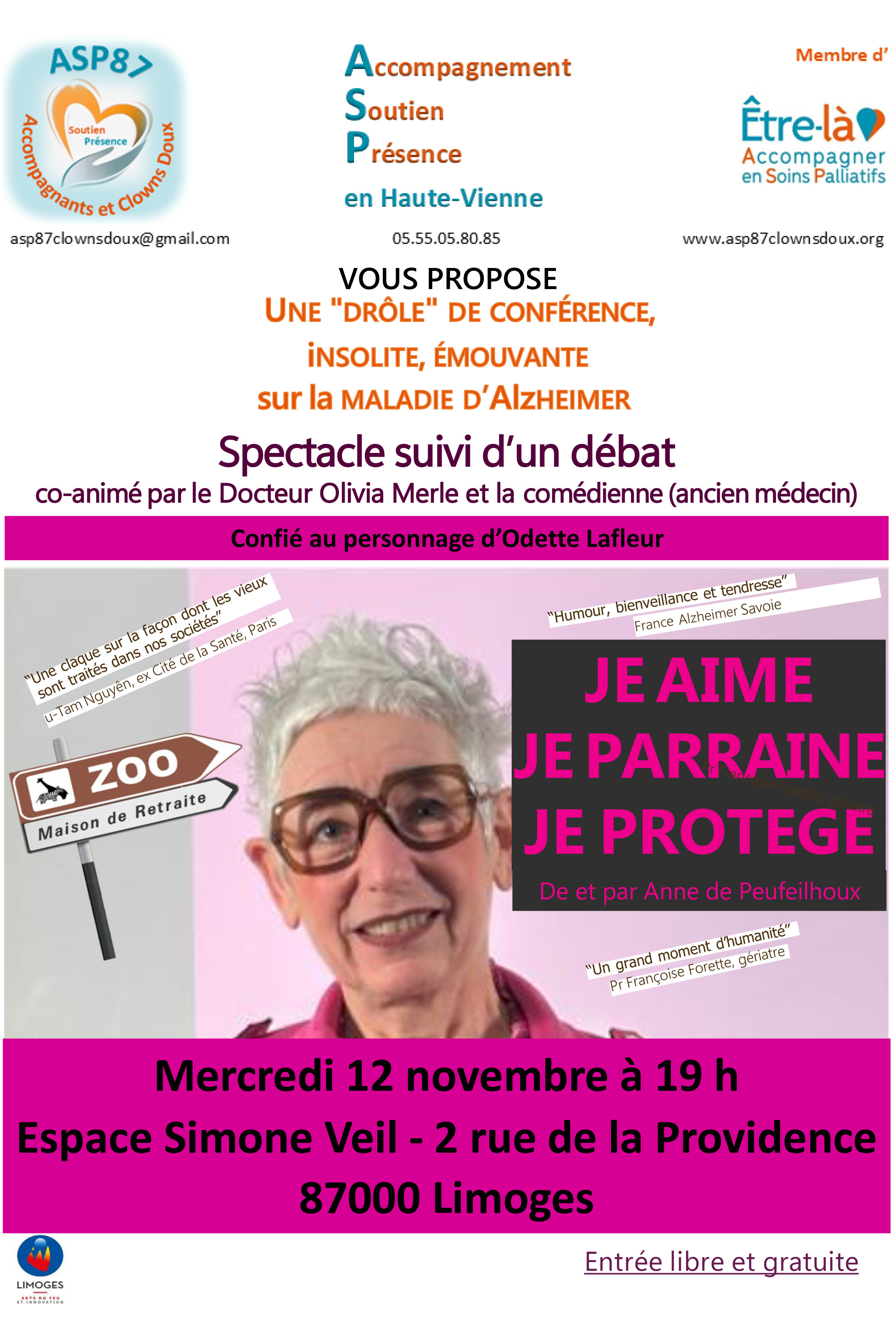 Ce spectacle est un grand moment d'humanité (Professeur Françoise FORETTE, Gériatre), un moment d'humour, de bienveillance et de tendresse et un éclairage sur cette pathologie