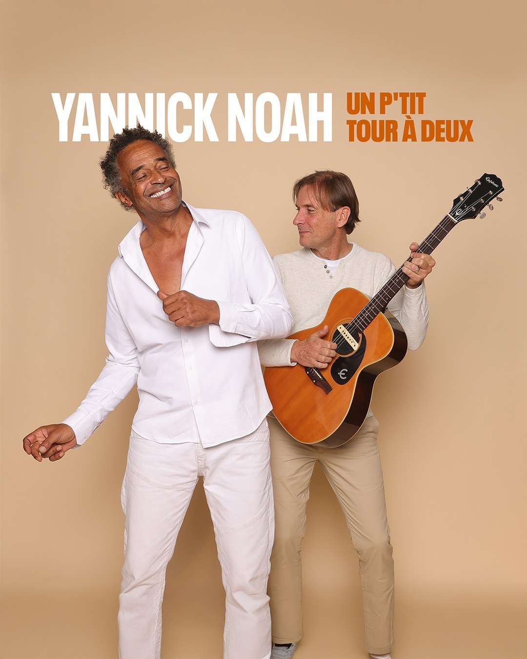 En 2026, Yannick Noah vous embarque pour une tournée acoustique et intimiste, portée par le sourire, le soleil et la bonne humeur. Accompagné de Nicolas Paillet à la guitare, il revisite ses plus grands tubes dans une version épurée, en toute simplicité.